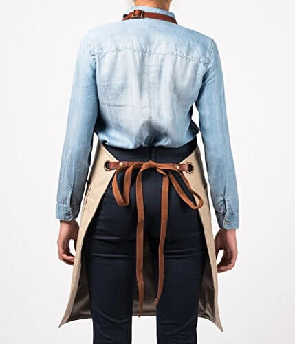Het Alaskan Maker N°325 schort is gemaakt van katoen en leer. Het schort beschermt tegen vuil en vocht dat bij het koken op uw kleding kan komen. Door middel van een nekband en een ceintuur rond uw middel knoopt u het schort om.