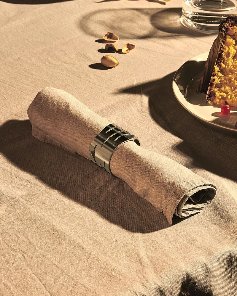 De Alessi Bakring servetring is ontworpen door Michel Boucquillon en Donia Maaoui. De door hun ontworpen collectie is gebaseerd op de schors van boom.