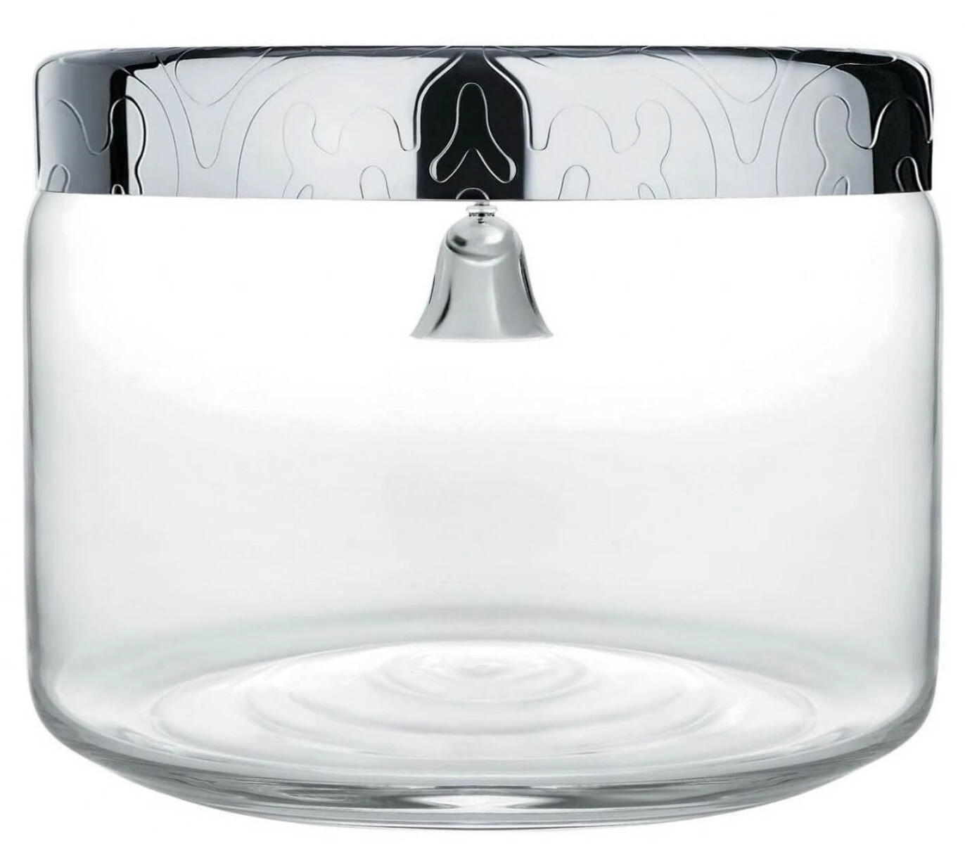 De Alessi Dressed koektrommel heeft een inhoud van 3 liter, een diameter van 19 cm en is 15 cm hoog. De door Marcel Wanders ontworpen pot is gemaakt van glas en heeft een roestvrijstalen deksel met reliëf decoratie. De Dressed collectie onthult een van de typische kenmerken van de ontwerpen van Wanders, waar oude vormen en stijlkenmerken worden weerspiegeld in een volledig eigentijdse interpretatie. Een opvallend detail van de koektrommel is het belletje aan de binnenkant van de deksel die rinkelt bij elke opening.