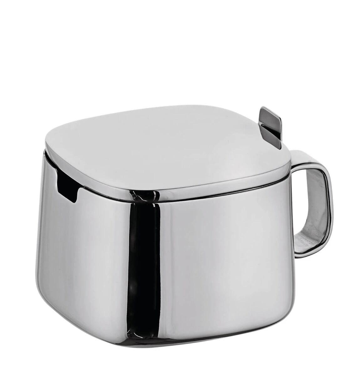 De strak vormgegeven Alessi Kristiina Lassus suikerpot heeft een inhoud van 300 ml. De van roestvrij staal gemaakte suikerpot heeft een scharnierend deksel en is voorzien van een uitsparing voor een suikerlepel.