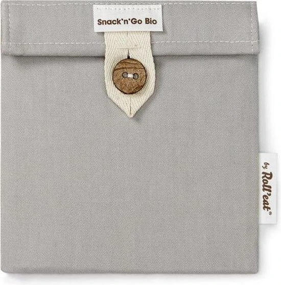 De grijze by Roll’eat Snack’n’Go herbruikbare snack bag is een duurzaam alternatief op plastic wegwerpzakjes. Het zakje is gemakkelijk te reinigen en vervaardigd van 100% biologisch katoen met een binnenlaag van biologisch, composteerbare folie. De snack bag heeft een afmeting van 18 x 18 cm. Na gebruik is de snack bag hygiënisch en compact op te bergen. Gebruik de Snack’n’Go herbruikbare snack bag voor het meebrengen van nootjes, fruit of een boterham.