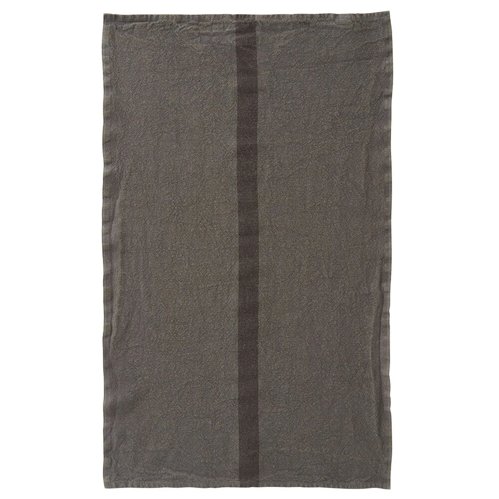 De Charvet DOUDOU theedoek is vervaardigd uit 100% linnen. De theedoek is geweven in een grijze kleur met een brede dokergrijze streep in het midden. De doek is 75 cm lang en 45 cm breed.
