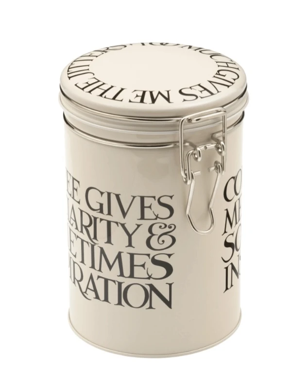 Dit Emma Bridgewater blik in de print Black Toast is gemaakt van blik en heeft een lengte van 15 cm en een breedte van 10,5 cm. Op het blik staat tekst afgedrukt. Het blik is makkelijk te openen en af te sluiten door de beugeldeksel. Gebruik de trommel om koekjes of andere etenswaren in te bewaren.