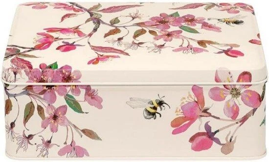 Dit Emma Bridgewater blik in de print Blossom is gemaakt van blik en heeft een lengte van 20 cm, een breedte van 15 cm en een hoogte van 8 cm. Op het blik staat bloesem afgedrukt. Gebruik de trommel om koekjes of andere etenswaren in te bewaren.