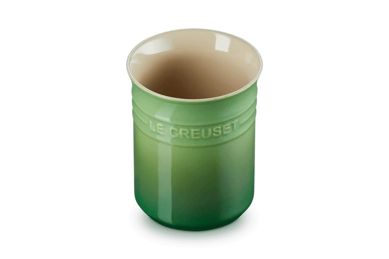 De bamboo Le Creuset pollepelpot is 15 cm hoog en gemaakt van groen geglazuurd aardewerk, de diameter bedraagt 12,5 cm. Naast het opbergen van uw pollepels kunt u de pot ook gebruiken voor het bereiden en serveren van gerechten.