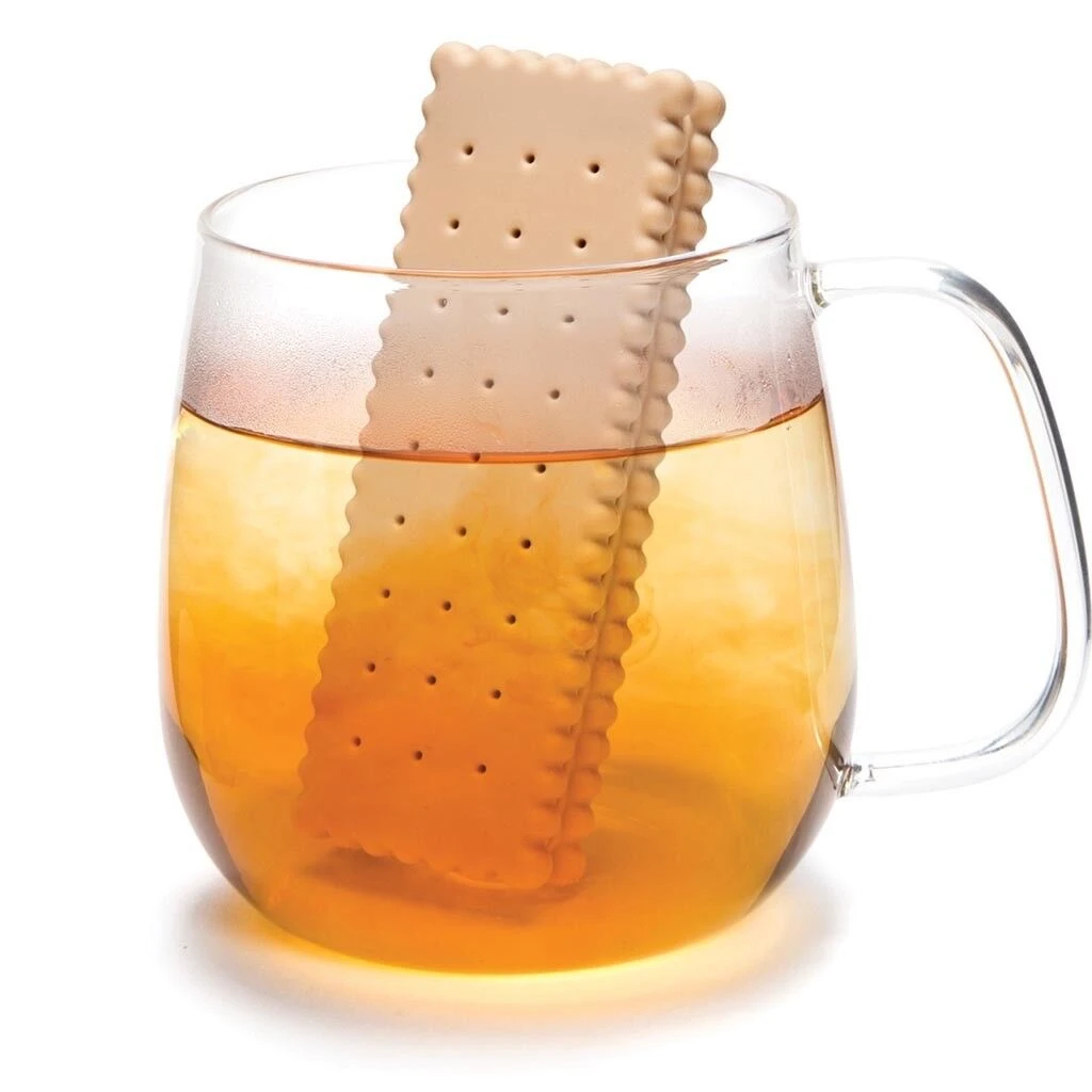 Het Biskviti thee-ei van Monkey Business is gemaakt van kunststof en roestvrij staal. Het thee-ei is vormgegeven als een biscuitje. Biskviti is 10 cm lang en 3 cm breed.