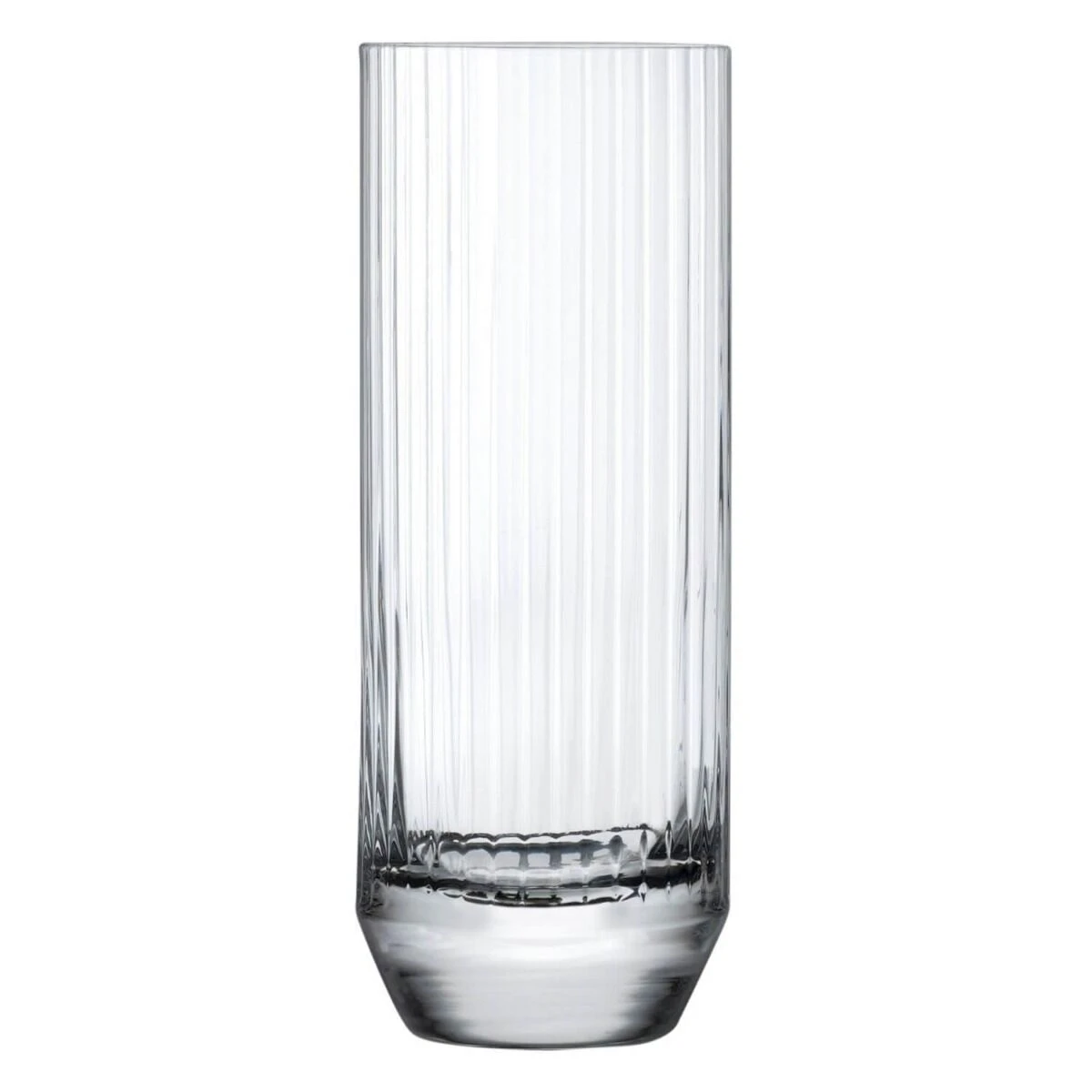 Het Nude Big Top longdrinkglas is gemaakt van loodvrij kristalglas. Het glas heeft een inhoud van 300 ml, een diameter van 6,2 cm en een hoogte van 14,5 cm. De vormgeving van het glas is geïnspireerd op het circus. Gebruik voor het drinken van diverse soorten dranken. De set bestaat uit 4 glazen.