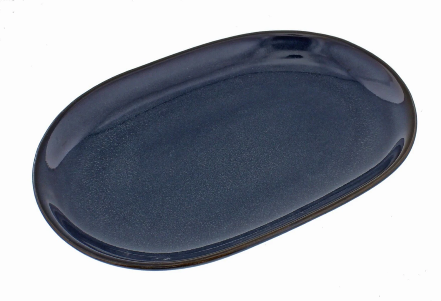 De Oldenhof 1821 ovale serveerschaal is gemaakt van blauw, geglazuurd aardewerk. De schaal heeft een diameter van 23 cm x 16 cm. Gebruik voor het uitserveren van diverse gerechten of hapjes.