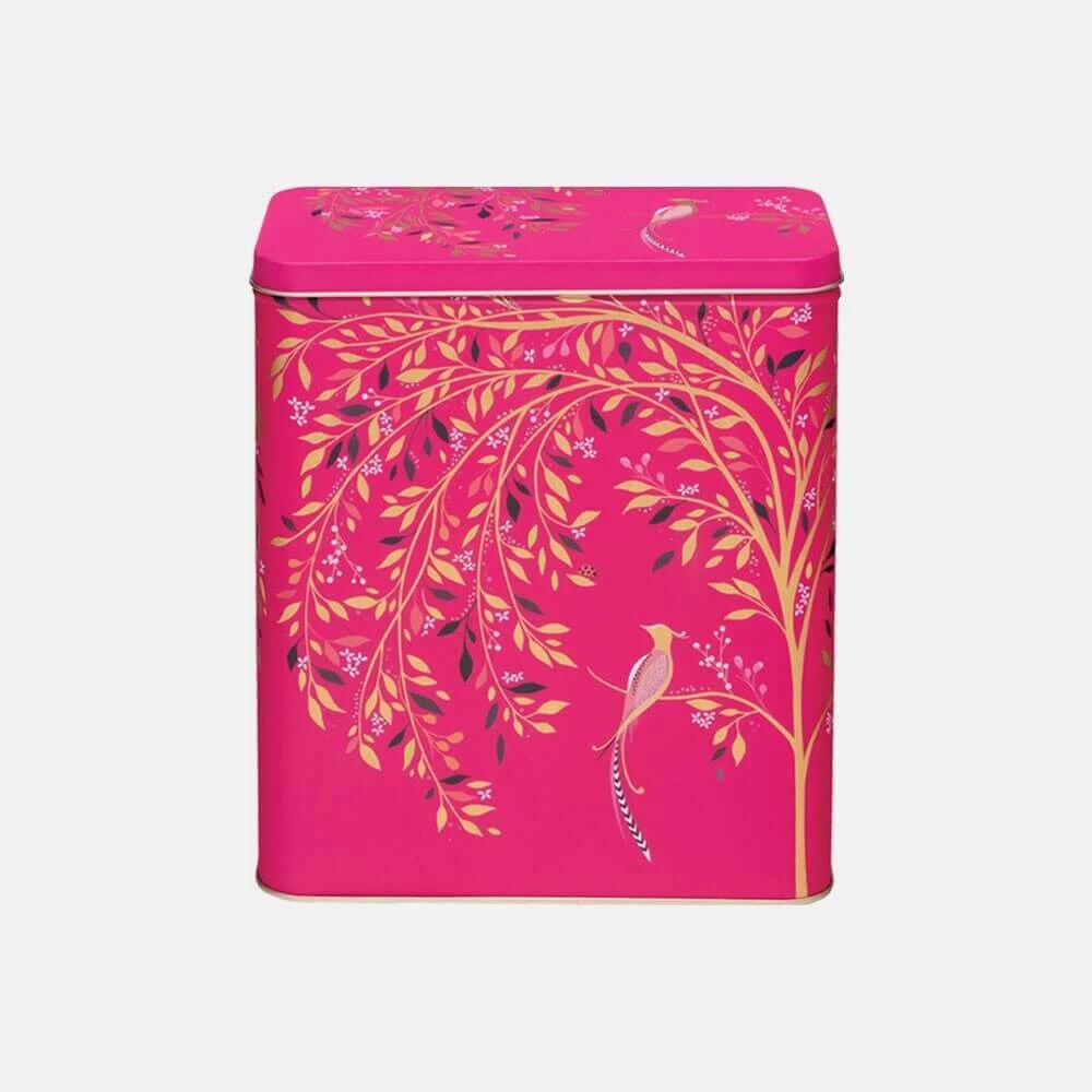 Dit Sara Miller blik uit de Chelsea collectie is gemaakt van blik en heeft een lengte van 19 cm, een breedte van 11 cm en een hoogte van 22,6 cm. Op het blik staan vogels afgedrukt. Gebruik de trommel om koekjes of andere etenswaren in te bewaren.