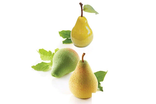De Silikomart flexibele bakvorm heeft 5 vormen van peren/ vijgen. Afzonderlijk hebben de vormen een lengte van 7,6 cm en een doorsnede van 6 cm met een inhoud van 115 ml. De gehele vorm is 30 cm lang en 12 cm breed met een totale inhoud van 575 ml. Dit artikel is niet geschikt voor in de oven.