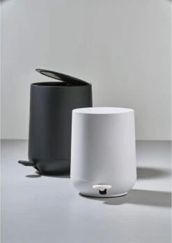 De Zone Denmark Nova afvalemmer is gemaakt van wit kunststof en is voorzien van een kunststof binnenemmer. De afvalemmer heeft een inhoud van 3 liter, een diameter van 20,5 cm en is 23,5 cm hoog. Met een geopende deksel is de emmer 38,5 cm hoog. Gebruik in badkamer of toilet.